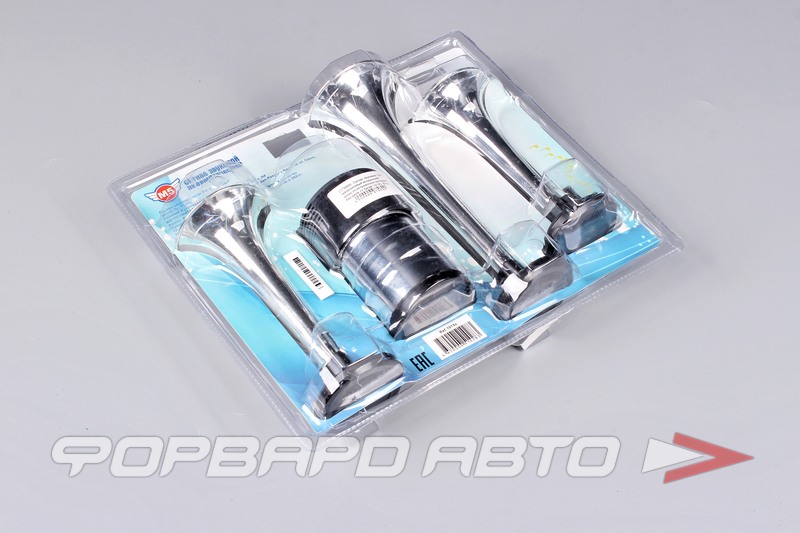 Сигнал звуковой 12V трехрожковый воздушный (хром) со встроенным мотором без реле 1015C (б.р.)