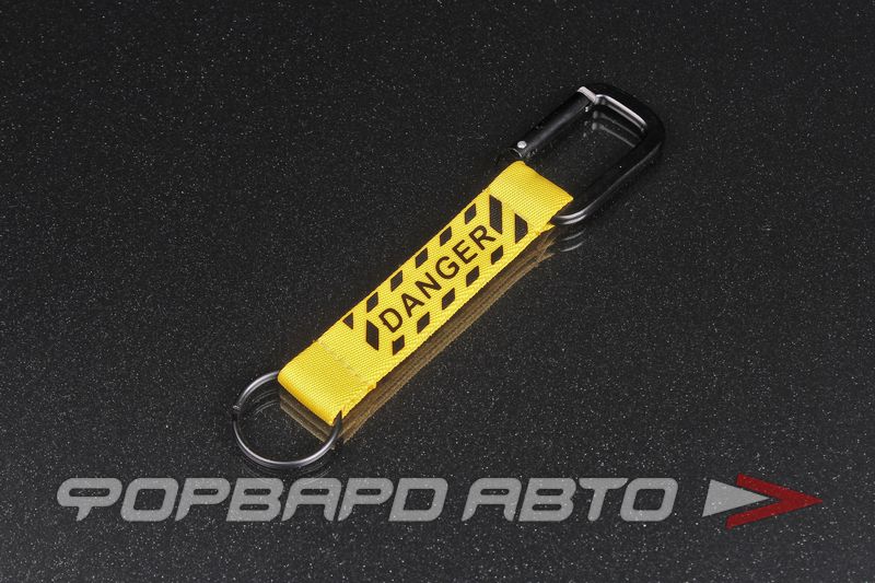—Брелок DANGER с карабином, текстильный желтый