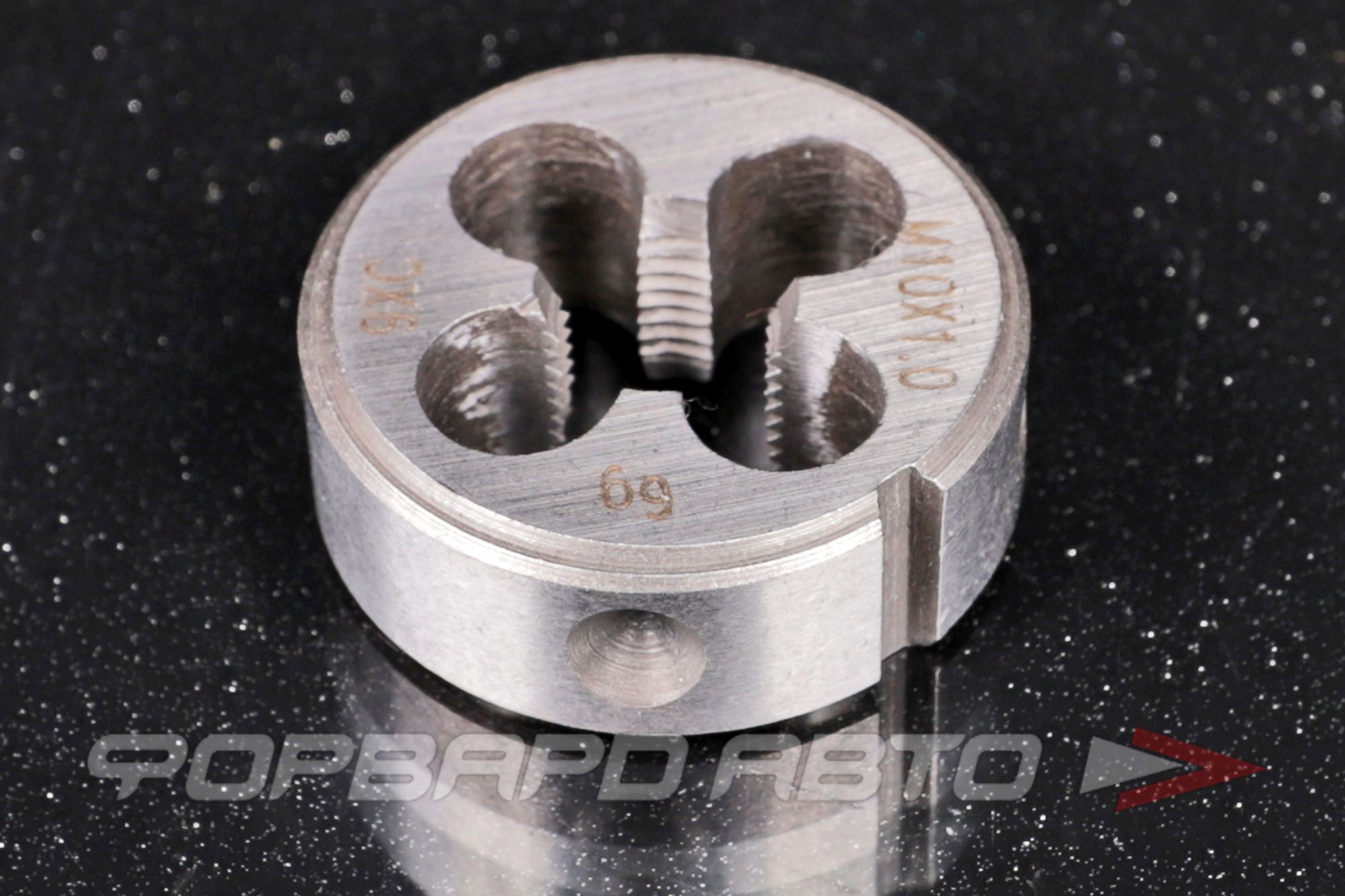 Описание: плашка с резьбой M10 и шагом 1 мм