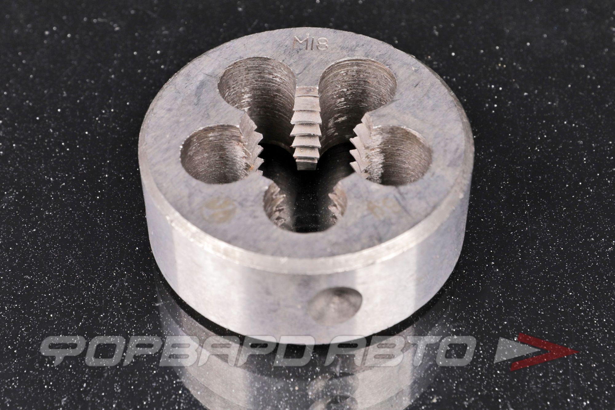 Плашка М18 — шаг резьбы 2,5 резьбонарезной инструмент для нарезания наружной резьбы ручным или машинным способом. Закрепляют в вороток(плашкодержатель) стопорными винтами.