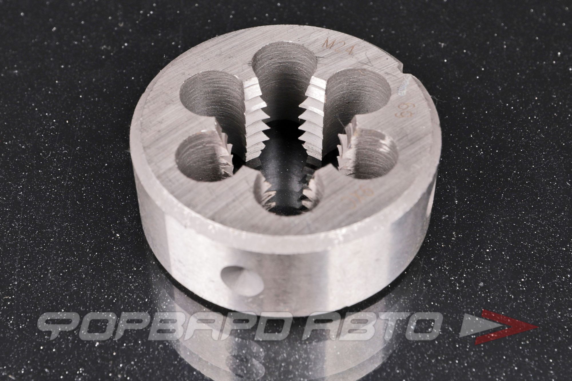 Плашка М24 — шаг резьбы 3 резьбонарезной инструмент для нарезания наружной резьбы ручным или машинным способом. Закрепляют в вороток(плашкодержатель) стопорными винтами.
