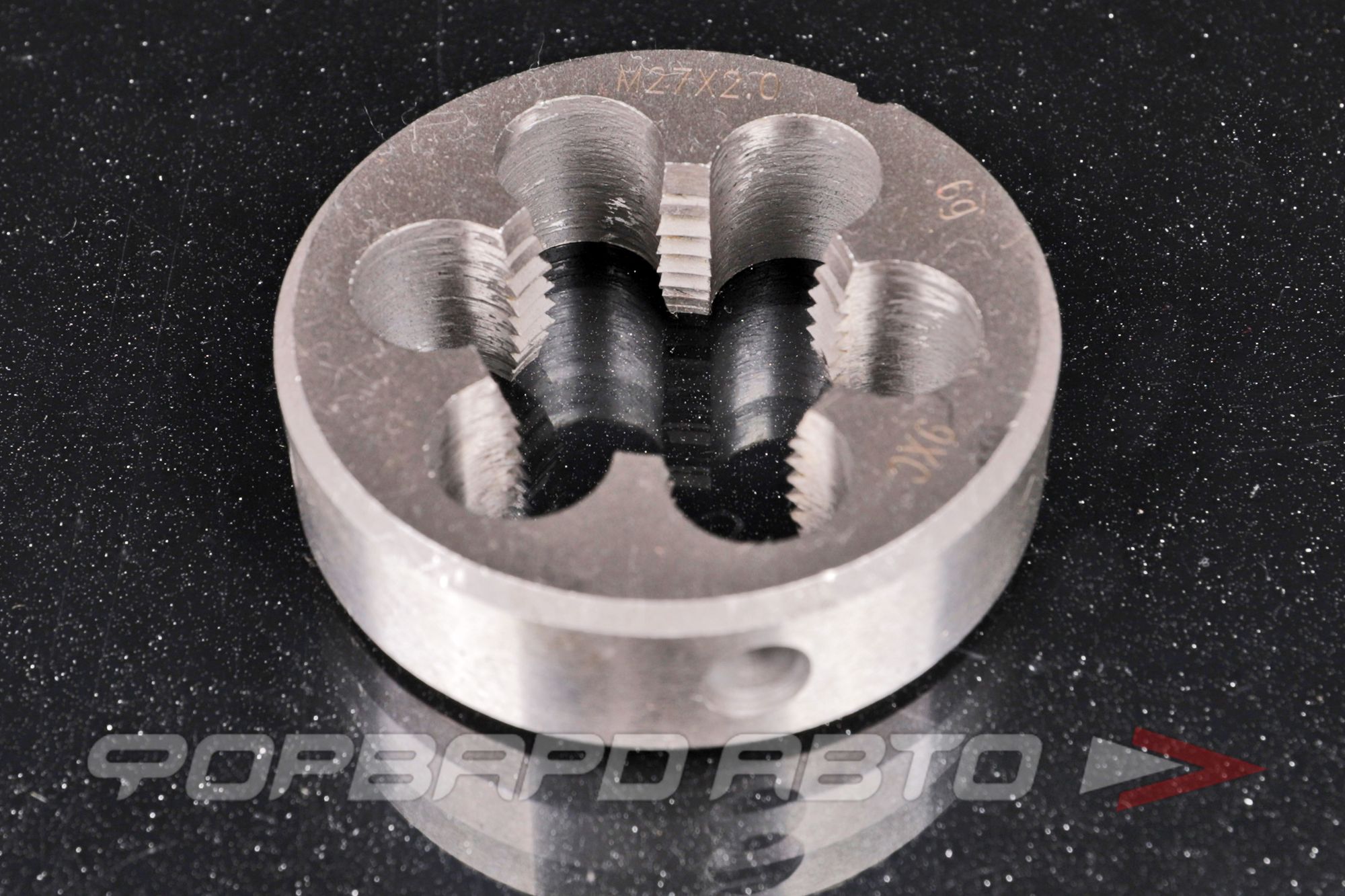 Плашка М27 — шаг резьбы 2 резьбонарезной инструмент для нарезания наружной резьбы ручным или машинным способом. Закрепляют в вороток(плашкодержатель) стопорными винтами.