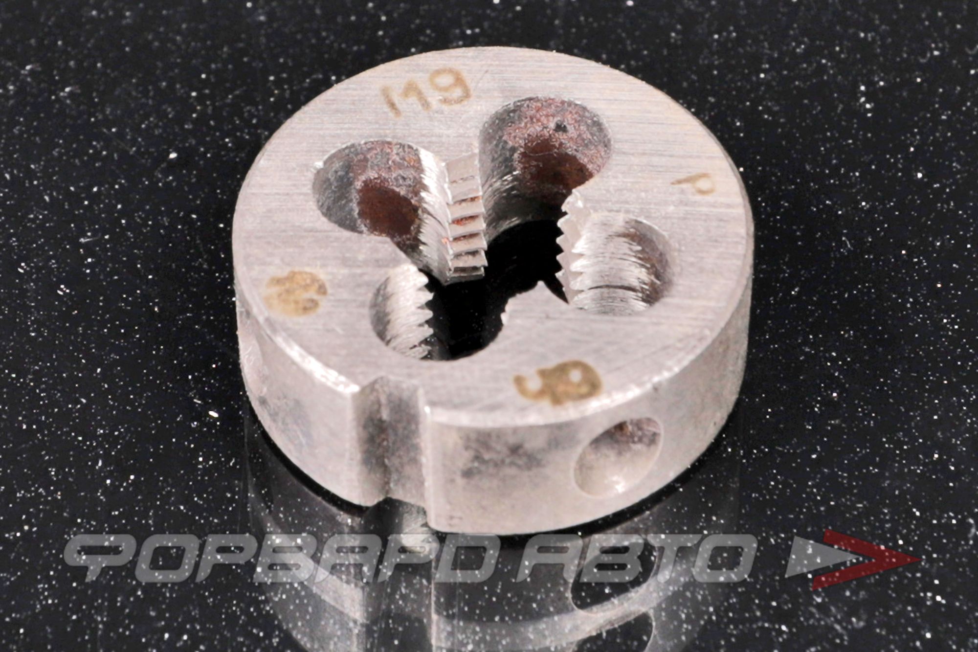 Плашка М9 — шаг резьбы 1,25 резьбонарезной инструмент для нарезания наружной резьбы ручным или машинным способом. Закрепляют в вороток(плашкодержатель) стопорными винтами.