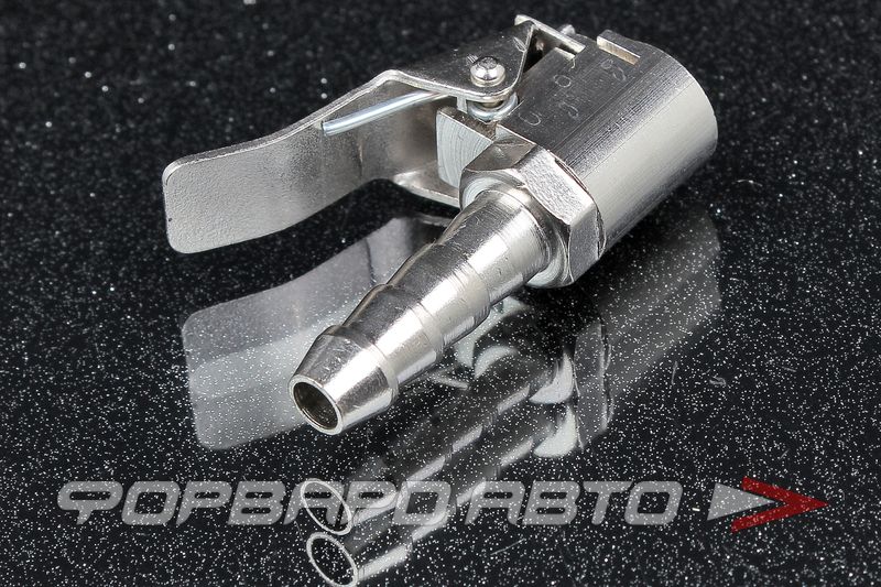 Описание: Наконечник на шланг для подкачки колес диаметром 8 мм, выполнен из хромированной стали.
