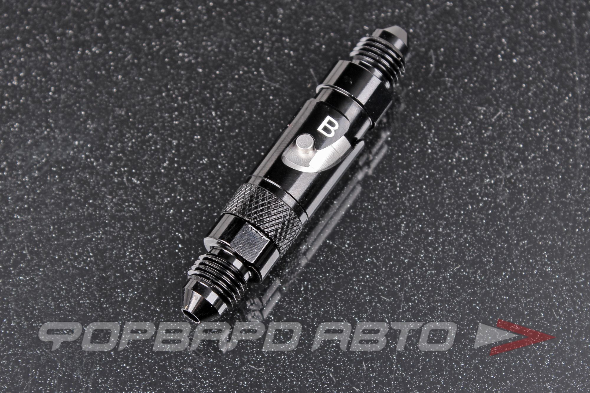 Фитинг - быстроразъёмное соединение. С обеих сторон соединения вкручены фитинги с резьбой AN3 с наименьшим проходным диаметром 3 мм. Соединение происходит за счёт шпонки и паза. Внутри фитинга присутствует пружина для прижатия друг к другу обеих частей БРС. Материал - алюминий.