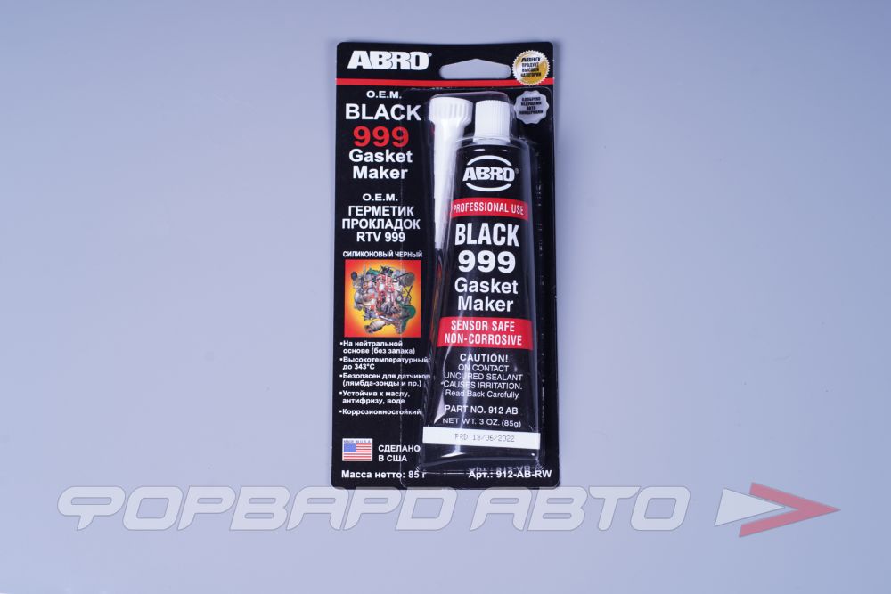 Герметик силиконовый черный, 85г 999 (высокотемпературный 343гр.) оригинал 912-AB-R ABRO США