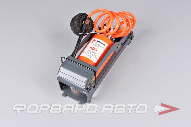 Насос ножной PA-400-02 от компании AIRLINE изготовлен из металла и имеет один цилиндр. Он поставляется в комплекте со спиральным шлангом длиной 400 мм.