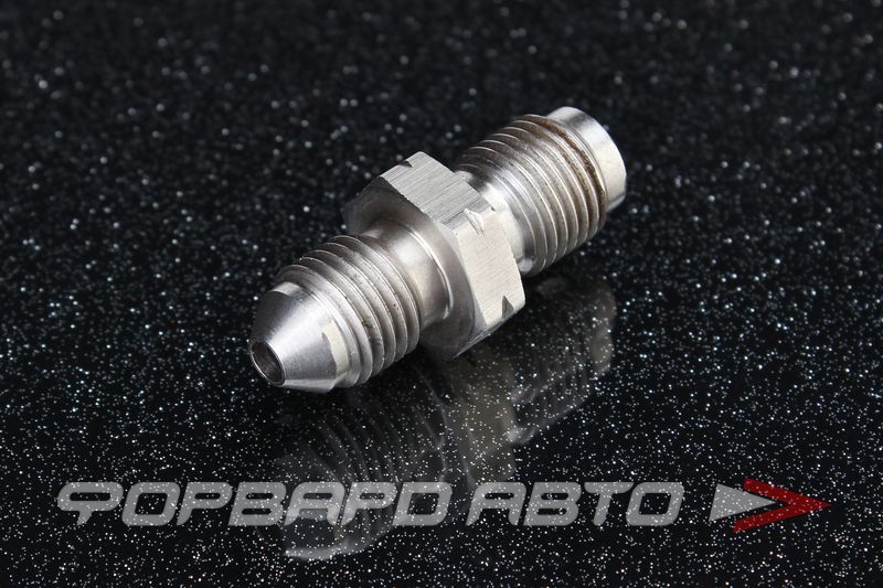 Фитинг - прямой, соединительный, предназначен для тормозной системы. На одной из сторон фитинга нарезана наружная резьба AN3, на другом - М10*1,0 мм. Наименьший проходной диаметр отверстия в тройнике равен 3 мм.