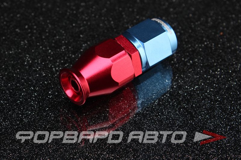 Фитинг соединительный, для шланга PTFE, прямой. С одного конца фитинга гайка с внутренней резьбой AN4, с другого - муфта под шланг AN4. Герметичность соединения обеспечивает латуниевая втулка (оливка). Цвет - синий с красным.