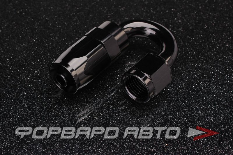Фитинг соединительный, под углом в 180 градусов. С одного конца фитинга гайка с внутренней резьбой AN6, с другого - муфта обжимающая, предназначенная для присоединения шланга AN6 к фитингу. Цвет - чёрный.