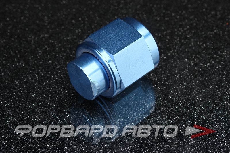 Фитинг - заглушка с внутренней резьбой AN10. Герметизация соединения происходит посредством внутреннего конуса колпачка. Цвет - анодированный синий.