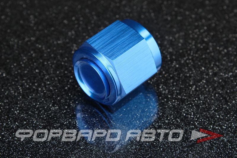 Фитинг - заглушка, c выступающим колпачком по мере его затягивания. Резьба внутренняя AN8. Герметизация соединения происходит за счёт внутреннего конуса фитинга. Материал – сплав алюминия, цвет синий (получен в результате анодирования металла).