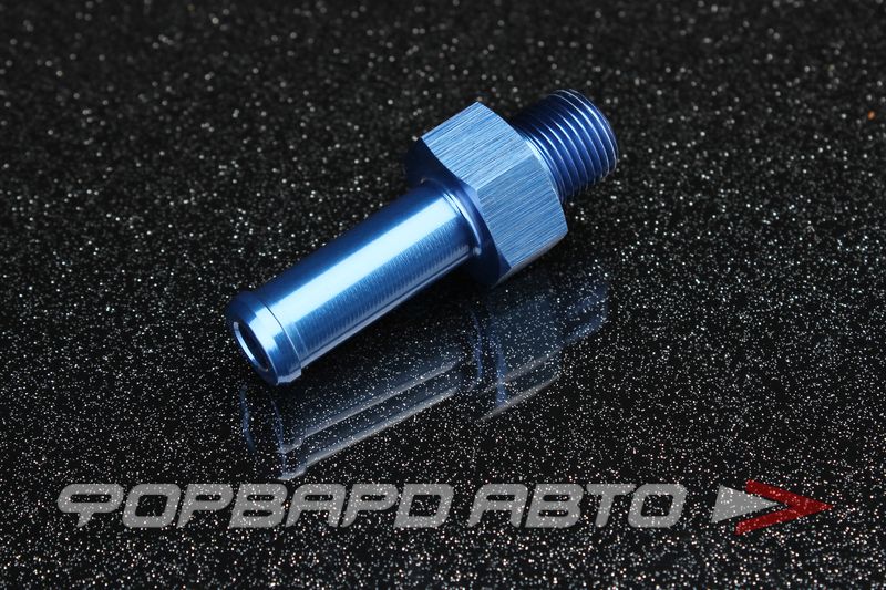 Фитинг соединительный переходной. С одного конца фитинга нарезана резьба 1/8", с другого - трубка, предназначенная для присоединения шланга с минимальным диаметром 9 мм к фитингу. Цвет - синий.