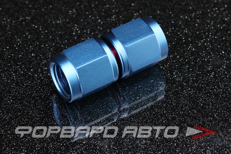 ,p.Фитинг соединительный, прямой с внутренними резьбами AN4 на AN4. Наименьший проходной диаметр 4 мм. Материал – сплав алюминия, цвет – синий (получен в результате анодирования металла).