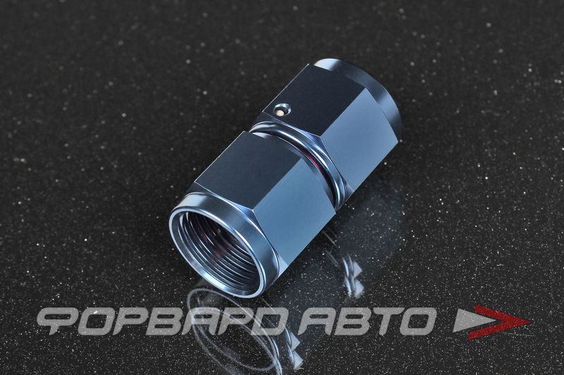 Фитинг соединительный, прямой с внутренними резьбами AN8 на AN8. Наименьший проходной диаметр 10 мм. Материал – сплав алюминия, цвет – синий (получен в результате анодирования металла).