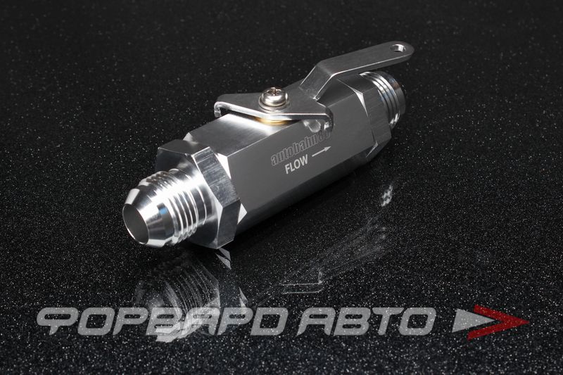 Фитинг - кран. Кран шарикового типа, шар выполнен из того же металла, что и сам кран. С обоих концов крана есть выходы с наружными резьбами AN10. Материал - сплав алюминия, цвет - металлический.