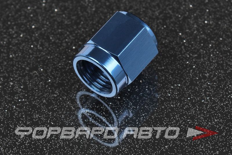 Фитинг - заглушка, c выступающим колпачком по мере его затягивания. Резьба внутренняя AN3. Герметизация соединения происходит за счёт внутреннего конуса фитинга. Материал – сплав алюминия, цвет синий (получен в результате анодирования металла).