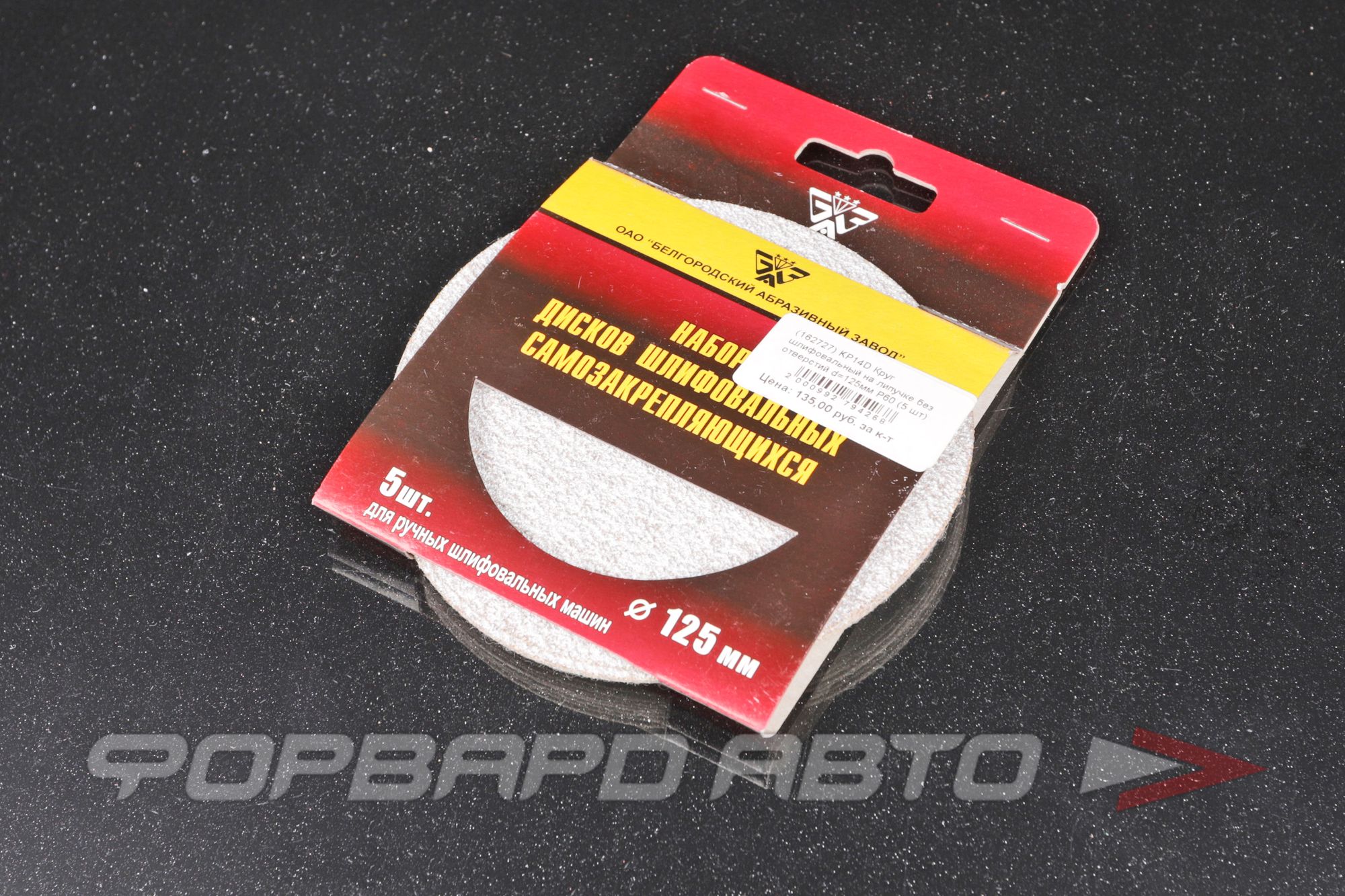 Круг шлифовальный KP14D производится на базе компании БАЗ в России. Он имеет диаметр 125 мм и зернистость Р60. Круги не имеют отверстий и крепятся на инструменте с помощью липучки.