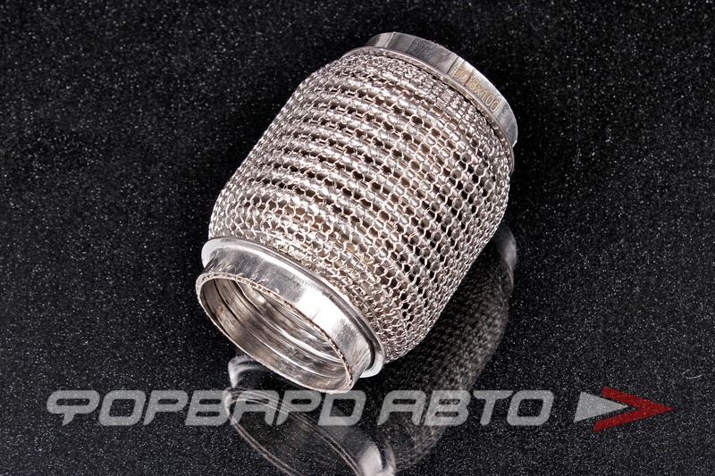 Описание: гофра глушителя предназначена для уменьшения шума и вибраций, которые возникают при работе автомобильного двигателя. Она изготовлена из трехслойного материала и имеет сетчатую структуру, что обеспечивает ее прочность и долговечность.