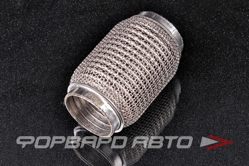Описание: Гофра глушителя предназначена для уменьшения шума и вибраций в системе выхлопных газов автомобиля. Изготовлена из трехслойного материала с сеткой, что обеспечивает высокую прочность и долговечность изделия.