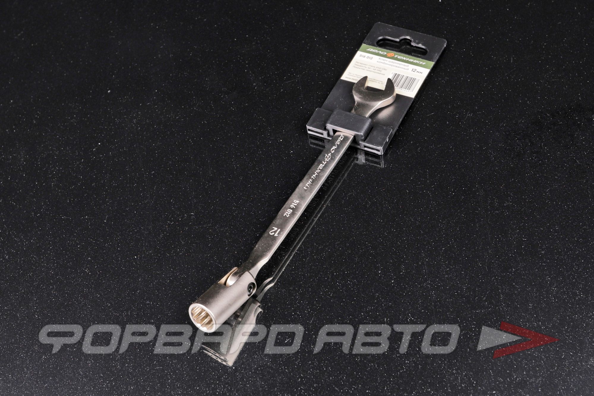 Комбинированный шарнирный ключ, с рожковым профилем на одной стороне и двенадцатигранным шарнирным профилем на другой.