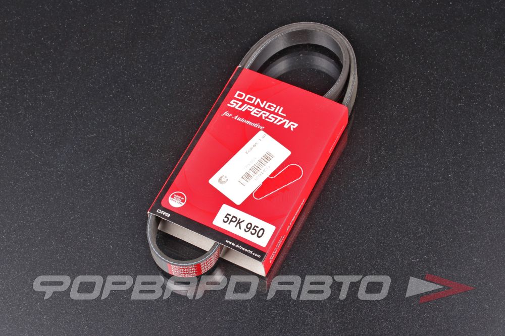 <h5>Ремень поликлиновой 5PK950, DONGIL</h5><p>Данный ремень имеет код 5PK950 и производится компанией DONGIL. Он предназначен для использования в различных механизмах и транспортных средствах, где требуется передача крутящего момента от двигателя к другим узлам.</p>