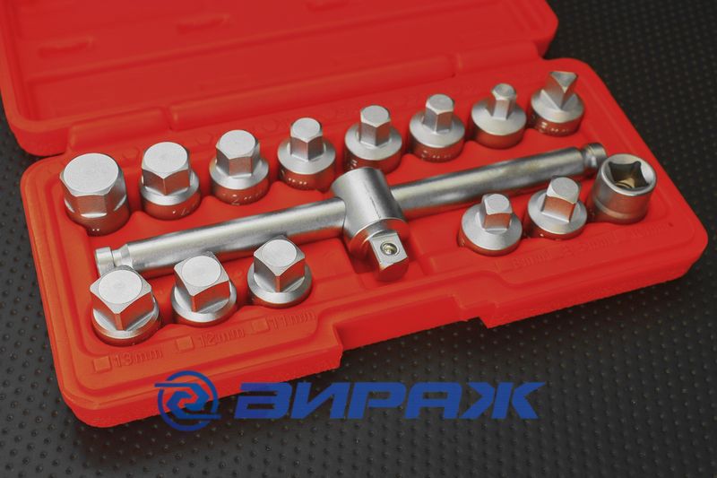 Набор вороток и насадок для слива масла 15пр. 915G2 от производителя FORCE предназначен для использования в автомастерских и сервисных центрах. Он позволяет быстро и удобно заменять масло в автомобилях, мотоциклах и другой технике.