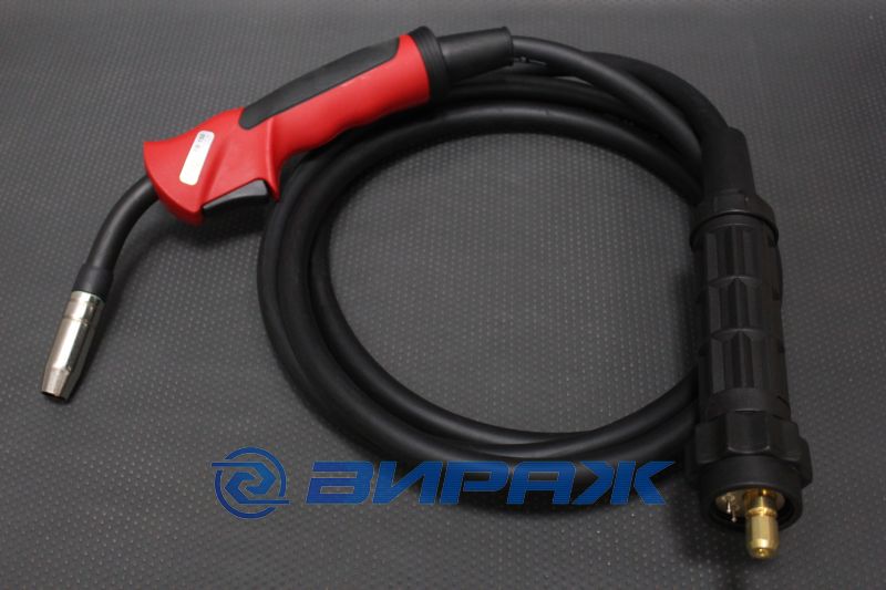 Оснащена евроразъемом, что делает использование горелок универсальным, позволяя применять их со сварочными полуавтоматами различных производителей