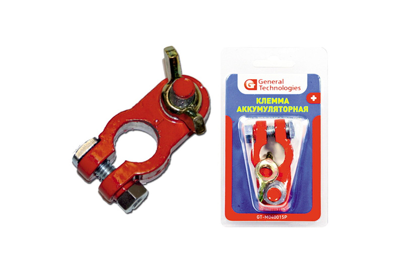 одель товара: GT-M040015P Производитель: General Technologies Тип клемм: EURO Type 1 Материал: Свинец Тип покрытия: Лакокрасочное Способ крепления провода: Крепление под болт с барашком Упаковка блистер: 1шт. - Положительная Вес в упаковке, гр.: 150 Габаритные размеры упаковки, (ШхВхГ), мм.: 62*95*30