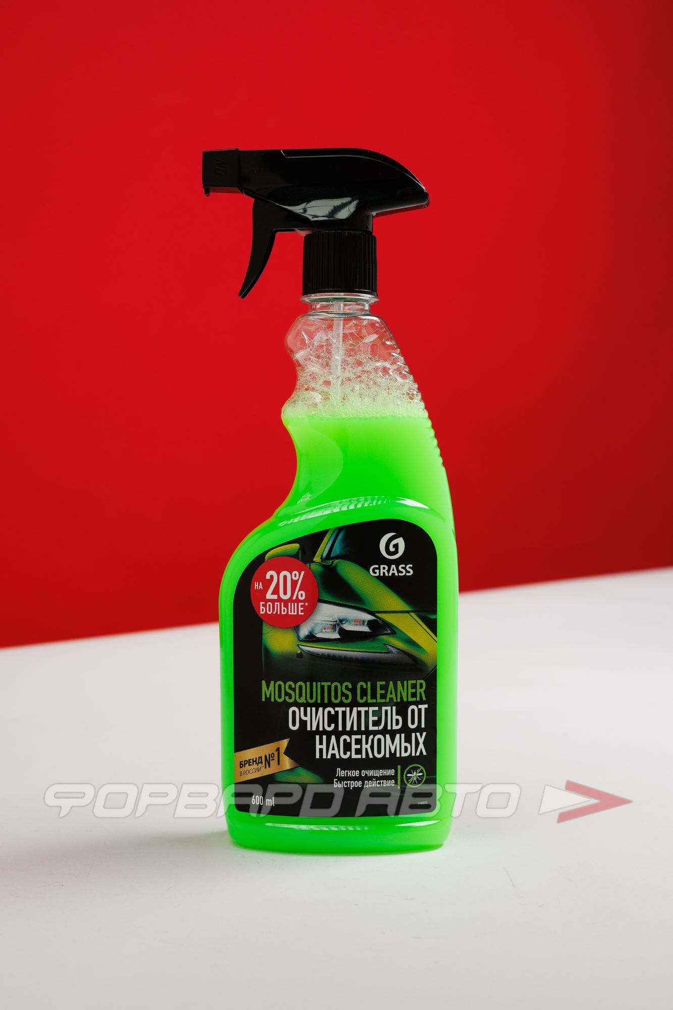 "Mosquitos Cleaner" - это универсальный очиститель, который эффективно удаляет следы насекомых, тополиные почки, птичий помет и другие загрязнения с кузова автомобиля.