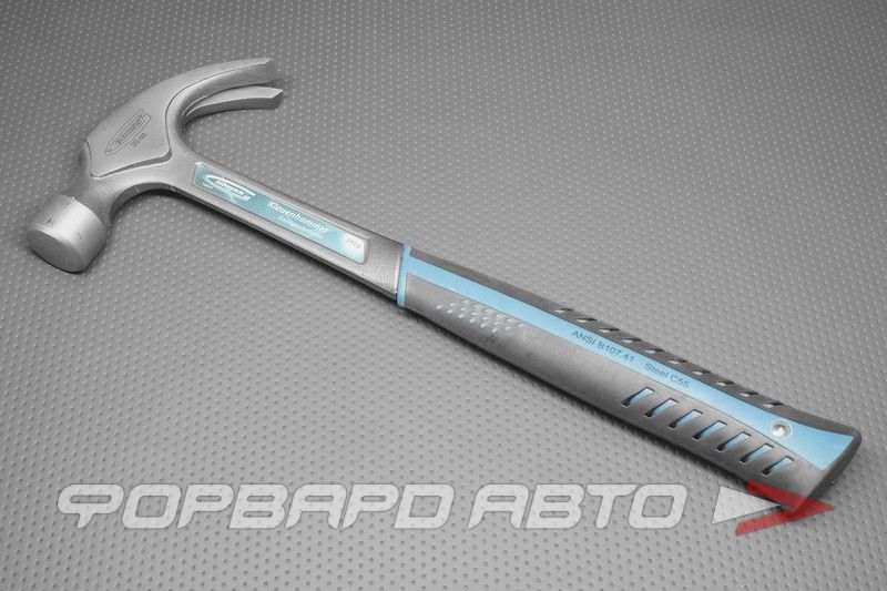 Молоток изготовлен из стали С55. Головка кованая, что уплотняет структуру металла и придает ей однородность, повышая тем самым прочность и износостойкость инcтрумента. Разным частям головки молотка путем селективной закалки токами высокой частоты придана различная твердость. Боек головки ― часть, используемая при работе наиболее часто и принимающая на себя максимальные нагрузки, ― имеет твердость по Роквеллу 50―52 HRc на глубине до 3 мм. Носок головки (гвоздодер), используемый только для извлечения гвоздей различных размеров, более пластичен и имеет твердость по Роквеллу 44―48 HRc. И, наконец, всад (область соединения головки и рукоятки) – часть головки молотка, не подверженная интенсивным нагрузкам и являющаяся связующим звеном между бойком и носком головки, наиболее пластична и имеет твердость 28―35 HRc. Такая выборочная закалка обеспечивает бойку и носку – рабочим частям головки – высокую прочность и препятствует образованию расклепов и сколов на гранях. Молоток оснащен трехкомпонентной фибергласовой рукояткой. Сердцевина молотка («сердечник»), изготовленная из фибергласа (прессованной стеклоткани), покрыта снаружи высококачественным ударопрочным пластиком слоем в 4,5 мм. Наряду с высокой прочностью это обеспечивает рукоятке еще и относительную пластичность. Нижняя часть рукоятки обрезинена. Ее эксклюзивная форма и особая структура поверхности обеспечивает удобство захвата рукоятки и исключает выскальзывание инструмента из руки во время работы. Высокое качество производства молотка, идеальная сбалансированность рабочих и вспомогательных частей инструмента гарантирует высокую эффективность работы и комфорт при его эксплуатации как профессионалами, так и мастерами-любителями.