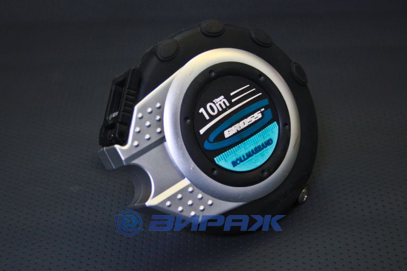 Геодезическая рулетка Rollmasband торговой марки GROSS с измерительным полотном длиной 10 м применяется при проведении замеров на строительных площадках, открытых участках и пр.