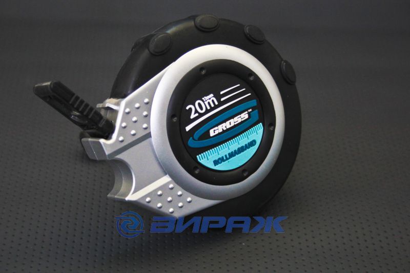 Геодезическая рулетка Rollmasband торговой марки GROSS с измерительным полотном длиной 20 м применяется при проведении замеров на строительных площадках, открытых участках и пр.