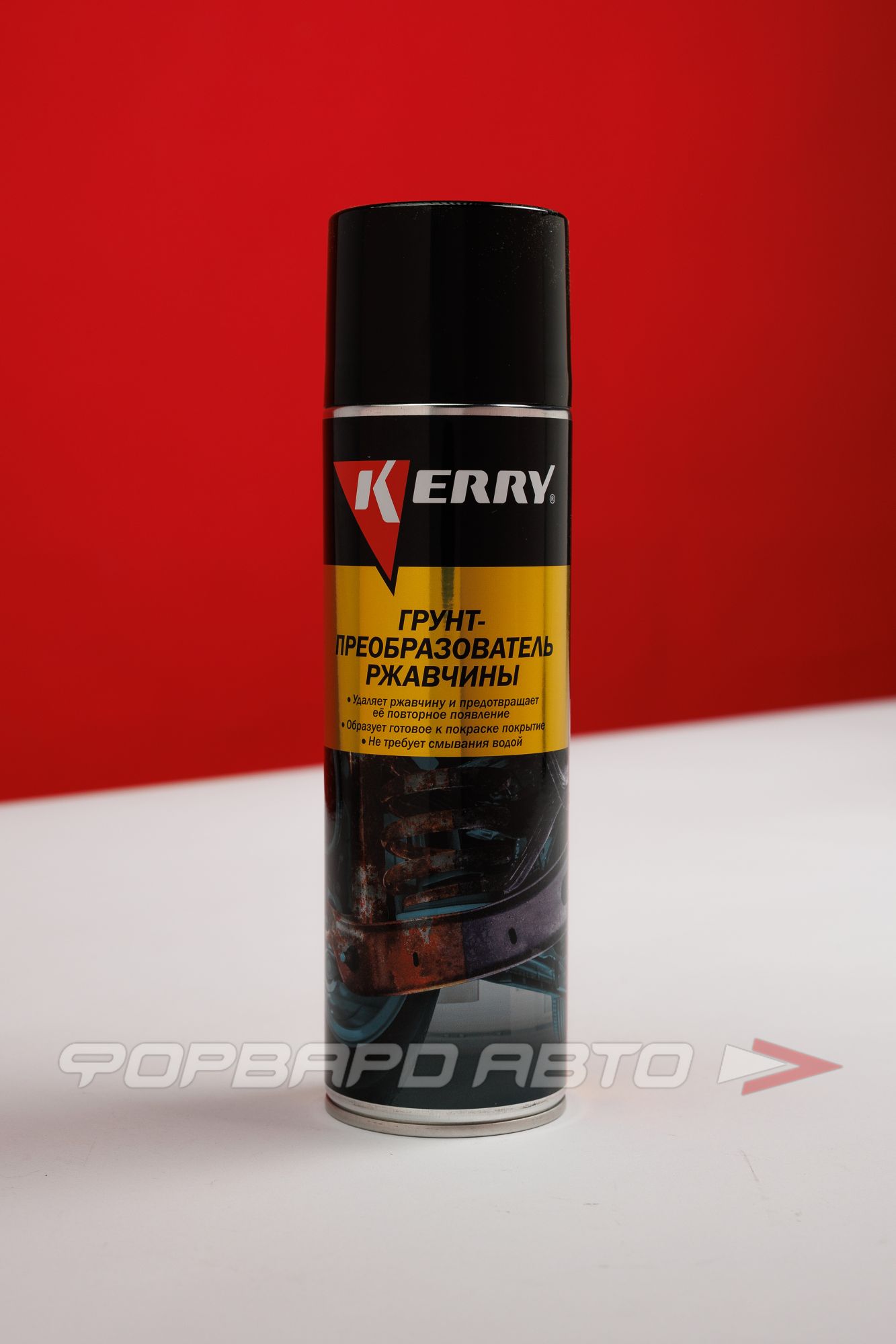 Кислотный преобразователь ржавчины в грунт KERRY KR-973 в аэрозольном баллоне. Применяется для подготовки к покраске поражённых ржавчиной металлических поверхностей. Эффективно преобразовывает ржавчину и сохраняет поверхность от повторного появления коррозии. Образует готовое к окраске покрытие, стойкое к воздействию влаги и растворителей.