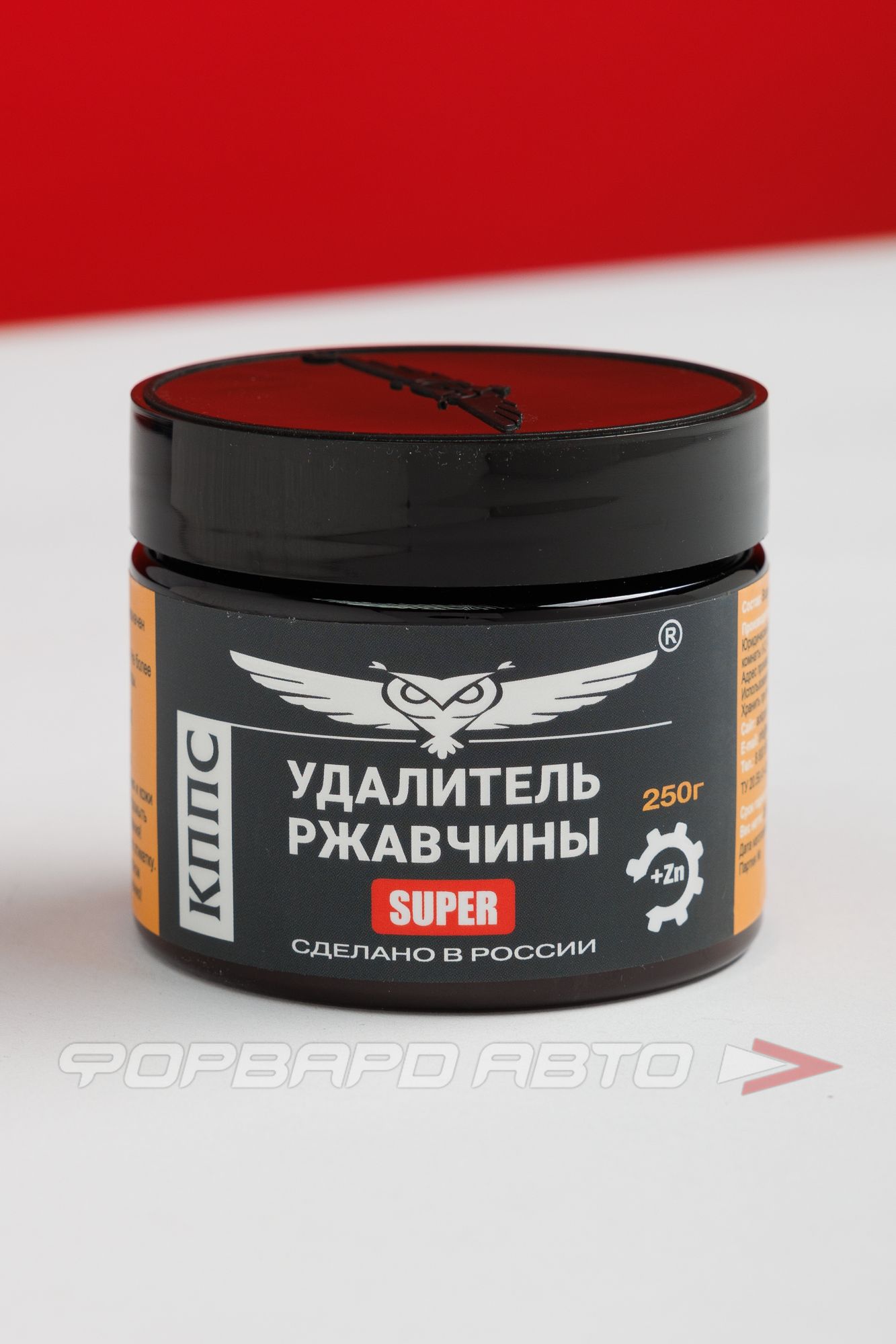 Паста антикоррозионная "Удалитель ржавчины SUPER" с цинком, 250гр профессиональное средство для мгновенного очищения поверхностей чёрных металлов, арматурных сталей, сварных труб и различных металлоконструкций от прочных продуктов коррозии. Введение в состав точно рассчитанного количества солей цинка повышает его активность в роли протектора и обеспечивает дополнительную защиту. Эффективно растворяет стойкие окалины до 3х мм. Время растворения ржавчины не более 20 минут. С помощью мелкодисперсных компонентов антикор КППС Super с цинком проникает глубоко под слой повреждения и растворяет ржавчину. Подобранный состав компонентов позволяет справиться с коррозионными повреждениями в считаные минуты. Экономичный расход. Удалитель ржавчины КППС Super позволяет удалить стойкие повреждения без применения механической очистки.