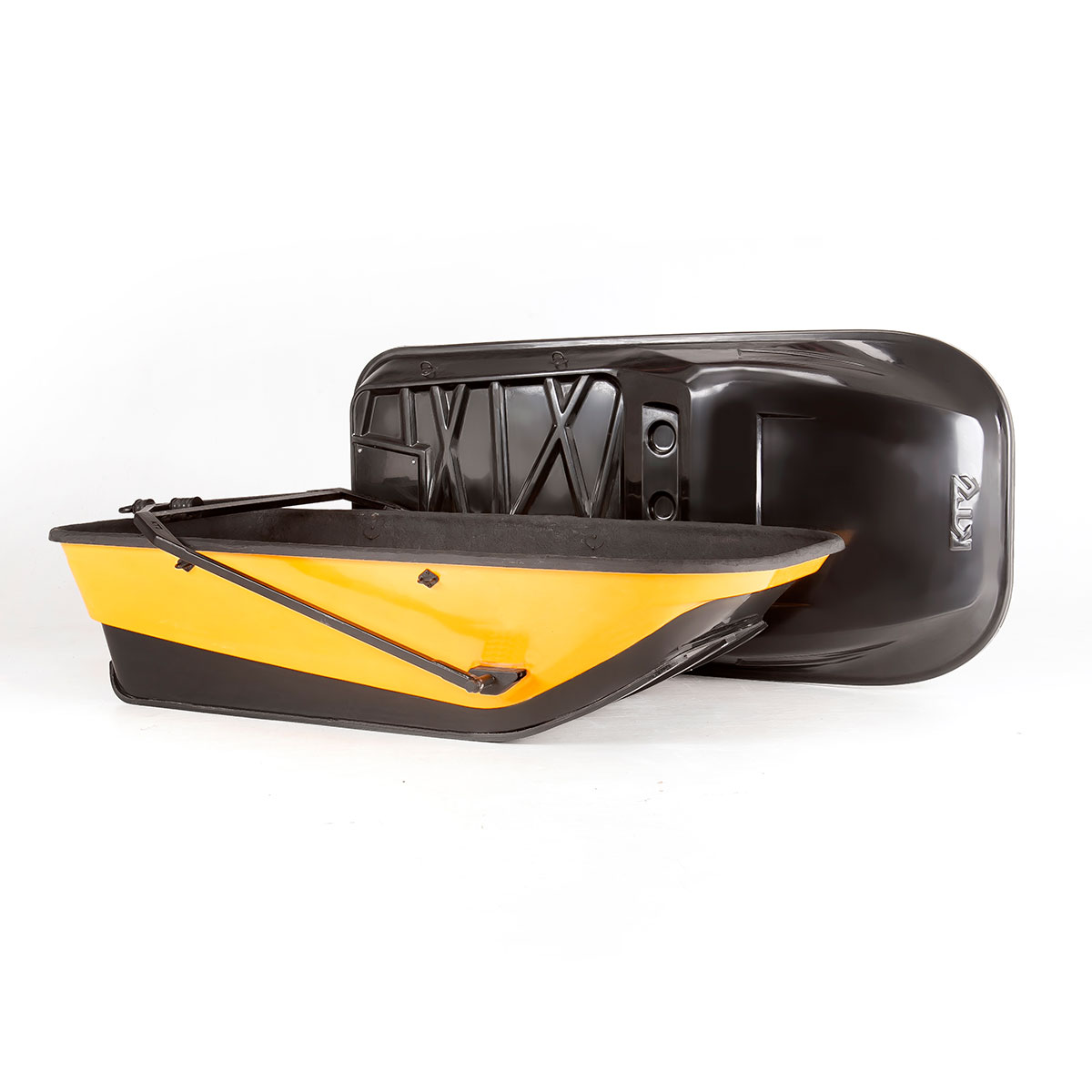 KTZ Compact — классические сани-волокуши с высокими бортами, удобным дышлом и кольцом для зацепа за снегоход.
