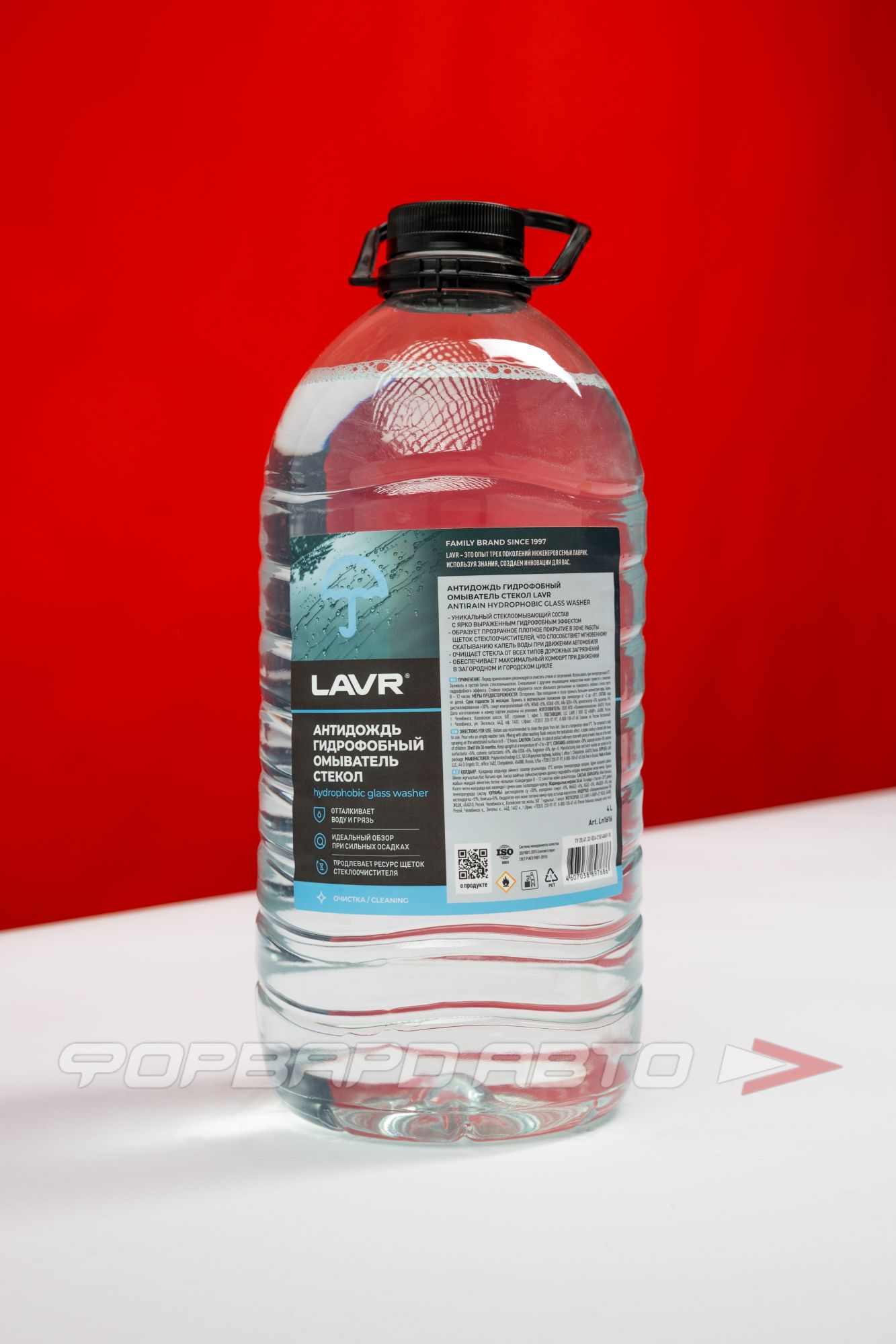 Антидождь гидрофобный омыватель стекол LAVR – уникальная очищающая жидкость для добавления в бачок стеклоомывателя. Образует плотное гидрофобное покрытие на лобовом стекле. Способствует мгновенному скатыванию капель воды при движении автомобиля под действием встречного потока воздуха и собственного веса капель. Дарит максимальный комфорт при движении в загородном и городском цикле.