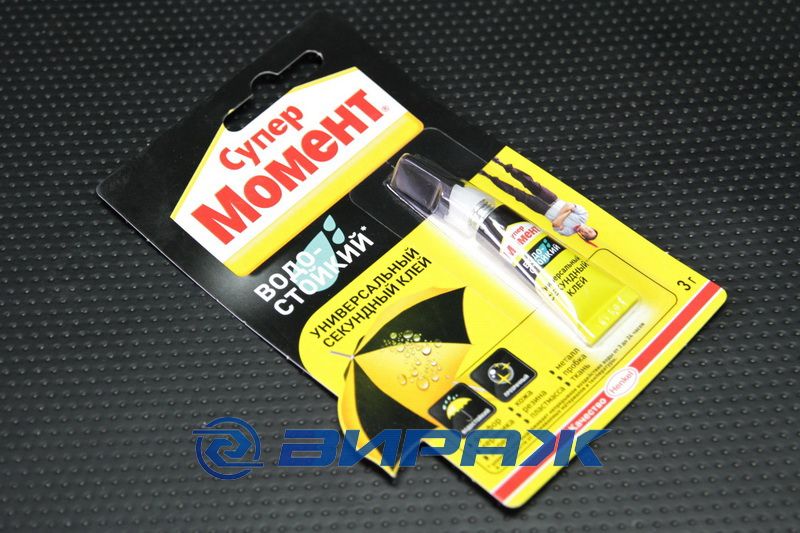 Водостойкий клей. Отлично соединяет фарфор, керамику, дерево, кожу, резину, пластмассу, металл, пробку, ткань