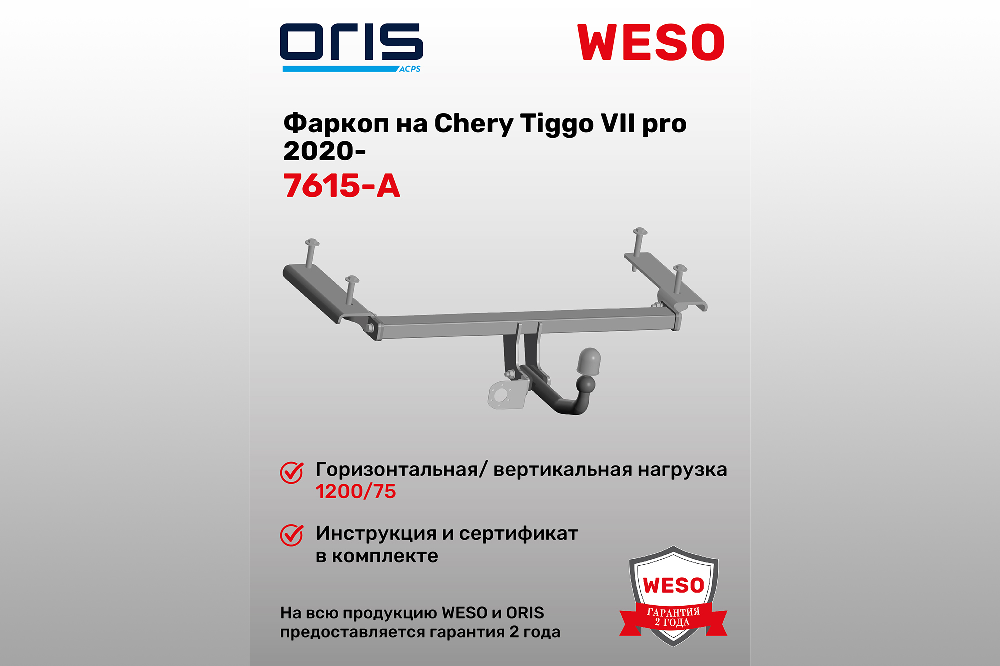 Фаркоп со стандартным шаровым узлом типа A (d=50 мм). Шар крепится с помощью болтов, что дает возможность при необходимости снять его с использованием инструментов. Изделие не комплектуется электрикой. Необходимо дополнительно приобрести смарт-коннект. Если шар фаркопа перекрывает номерной знак автомобиля, необходимо снимать его (шар) в случаях, когда автомобиль не буксирует прицеп.CHERY Tiggo VII pro (2020 - )
