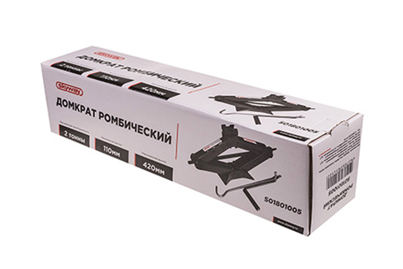 Домкрат механический ромбический 2т h 110-420мм SKYWAY в сумке-металлическая конструкция узлов и агрегатов обеспечивает высокую надежность и отказоустойчивость. Резиновая накладка на опорной части изделия при подъёме автомобиля оберегает поверхность кузова и рамы от повреждений. В качестве несущих элементов используется четыре шарнирно-соединительных рычага, образующих ромб. Подъем груза происходит за счет изменения углов между рычагами, что приводит к увеличению или уменьшению расстояния между подхватом и опорной площадкой.Внимание! Масса поднимаемого груза не должна превышать грузоподъёмность инструмента. Устанавливайте домкрат только на ровной и прочной поверхности. При подъёме груза убедитесь, что нагрузка приходится на центр опорной площадки.