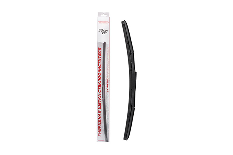Щетка стеклоочистителя гибридная SKYWAY 50см/20"- в основании щетки находится металлический каркас, который защищен от внешних воздействий окружающей среды спойлером из морозостойкого пластика. Каркас щетки обеспечивает максимальное соприкосновение стеклоочистителя со стеклом лобового изгиба, тем самым создавая надежное прилегание по всей длине к стеклу, даже на высоких скоростях, при этом защищая от пыли и влаги. Графитовое покрытие чистящей резинки исключают риск деформации ленты при эксплуатации и обеспечивает тихую работу дворников.Особенности: