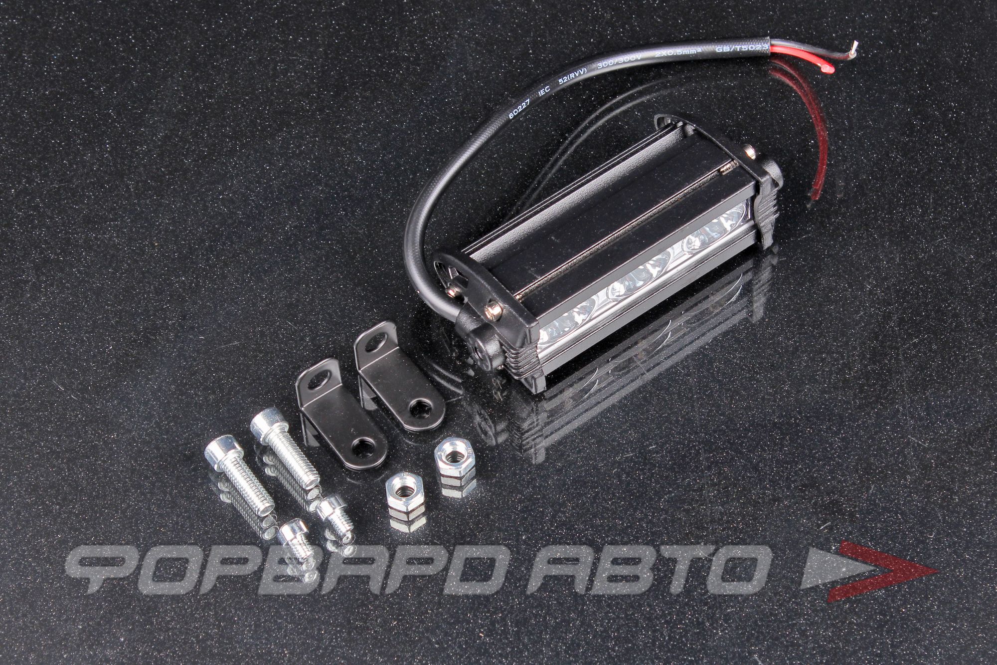 Размеры фары составляют 105*30*50мм, она имеет прямоугольную форму. Продукт производится в Китае компанией SKYWAY.