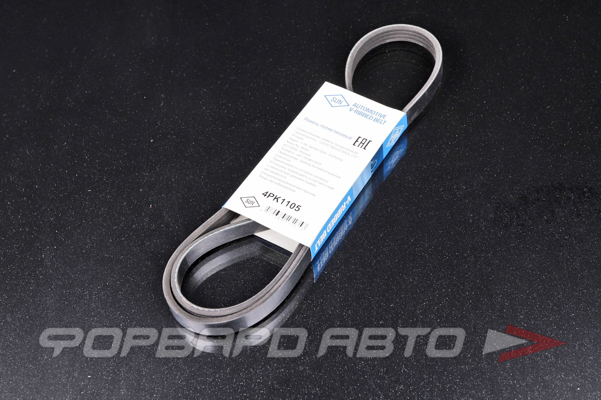 Ремень поликлиновой 4PK1105, SUN обеспечивает надежную передачу крутящего момента и позволяет экономить топливо благодаря меньшему трению, что делает его отличным выбором для замены старых или изношенных ремней.