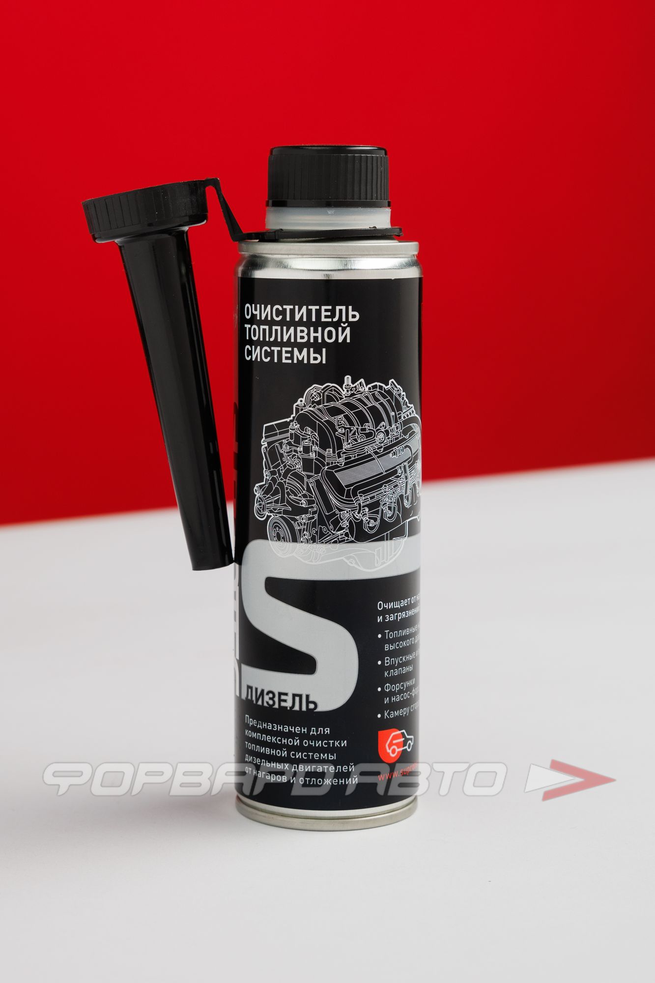 Очищает дозирующие элементы топливной системы от лаковых пленок путем растворения специальными составляющими очистителя.