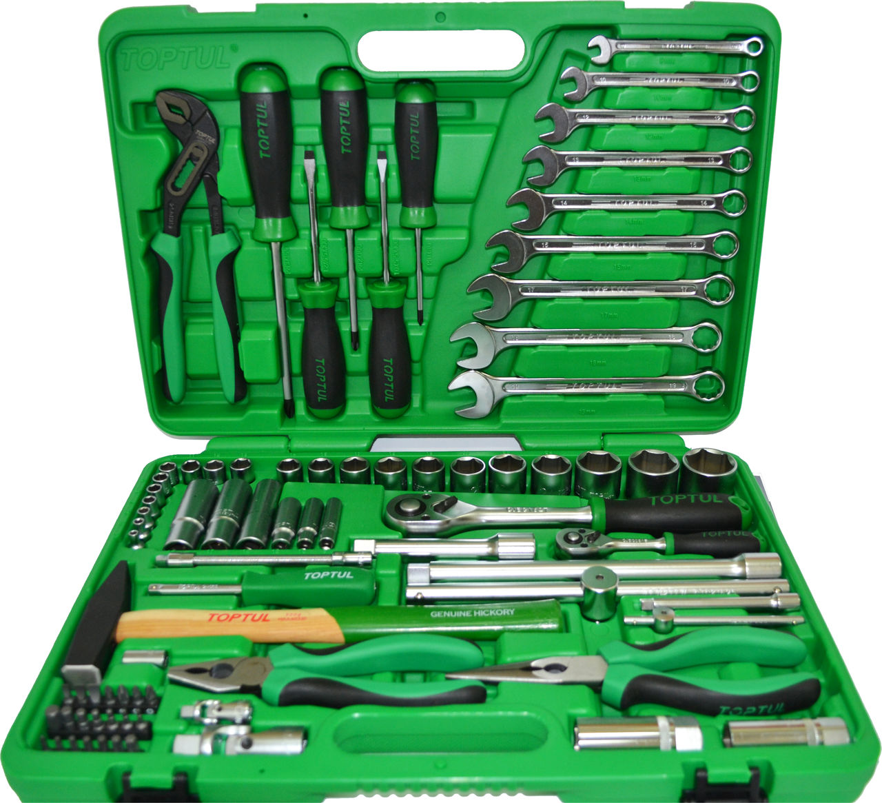 Набор инструмента 80 пр. 1/4+1/2 Toptul GCAI8002 - это комплект профессиональных ручных инструментов, который включает в себя 80 предметов с различными насадками и ключами. Он предназначен для использования в автомобильных, механических и промышленных работах.Набор инструмента Toptul GCAI8002 изготовлен из высококачественных материалов, что обеспечивает надежность и долговечность инструментов. Каждый предмет имеет точную геометрию и высокую прочность, что позволяет использовать его в тяжелых условиях.