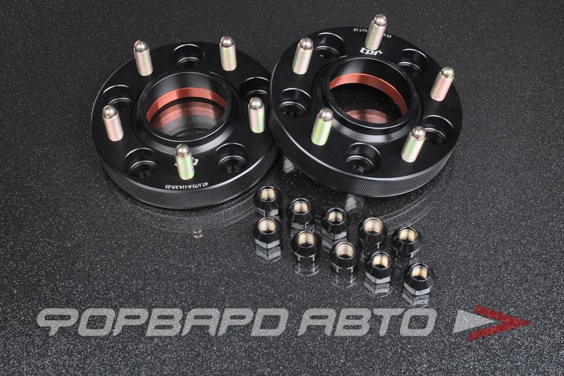 Проставки колесные 25 мм, 5*114.3 x M12*1.5, HUB = 67.1 -> 73.0, черные, +10 гаек, (MMC EVO, Mazda), Tpi