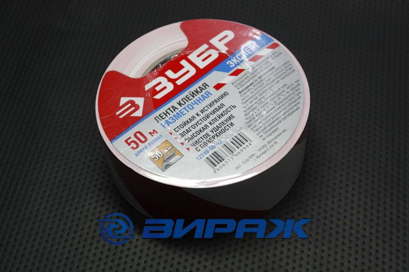Лента Зубр Эксперт клейкая разметочная используется для маркировки оборудования, разметки пола, ступеней и обозначения опасных зон.