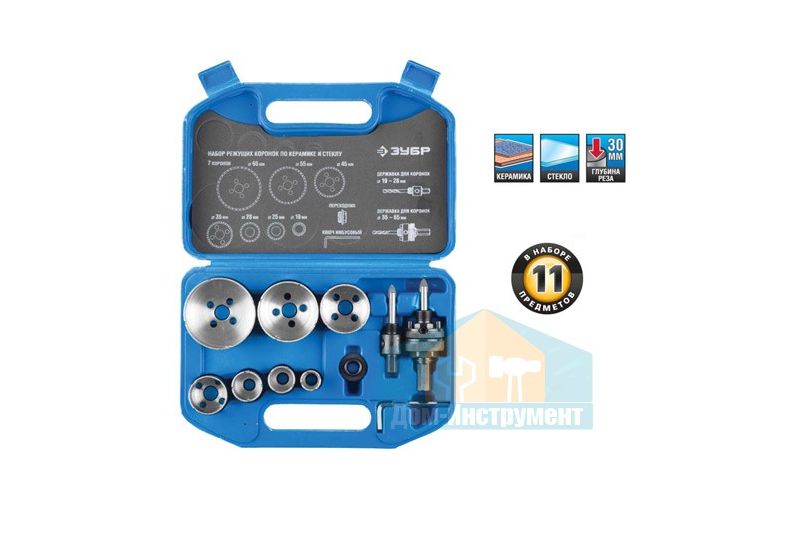 Коронки по керамике 19,25 28,35,45,55,65мм, алмазные, с оснасткой, переходник 7 предм. "ЭКСПЕРТ" 29870-Н7 от компании ЗУБР - это набор инструментов для работы с керамическими поверхностями. Набор включает в себя 7 коронок разных размеров (19, 25, 28, 35, 45, 55 и 65 мм), выполненных из алмаза и оснащенных специальной оснасткой для удобства работы. Также в наборе имеется переходник для подключения коронок к более мощному инструменту.Коронки по керамике 19,25 28,35,45,55,65мм, алмазные, с оснасткой, переходник 7 предм. "ЭКСПЕРТ" 29870-Н7 от ЗУБР применяются для обработки керамических поверхностей при ремонте и отделке помещений. Они позволяют быстро и качественно производить отверстия нужного диаметра и формы, не повреждая материал. Набор является незаменимым инструментом для профессиональных строителей и мастеров по ремонту.